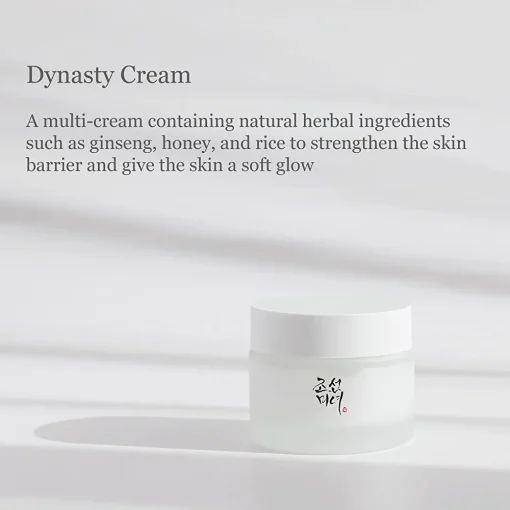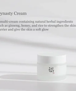 BEAUTY OF JOSEON Dynasty Cream est le tout premier produit chez Beauty of Joseon, et un favori de longue date de beaucoup des clients. Sa texture ferme et onctueuse hydrate et nourrit votre peau en profondeur et durablement. Cette crème tout-en-un est remplie d’ingrédients bons pour la peau comme l’eau de son de riz, l’eau de ginseng, le squalane et la niacinamide. Ces ingrédients aident à garder votre peau saine, hydratée et équilibrée. Sa texture ferme pénètre dans votre peau, lui apportant hydratation et nutrition en profondeur.