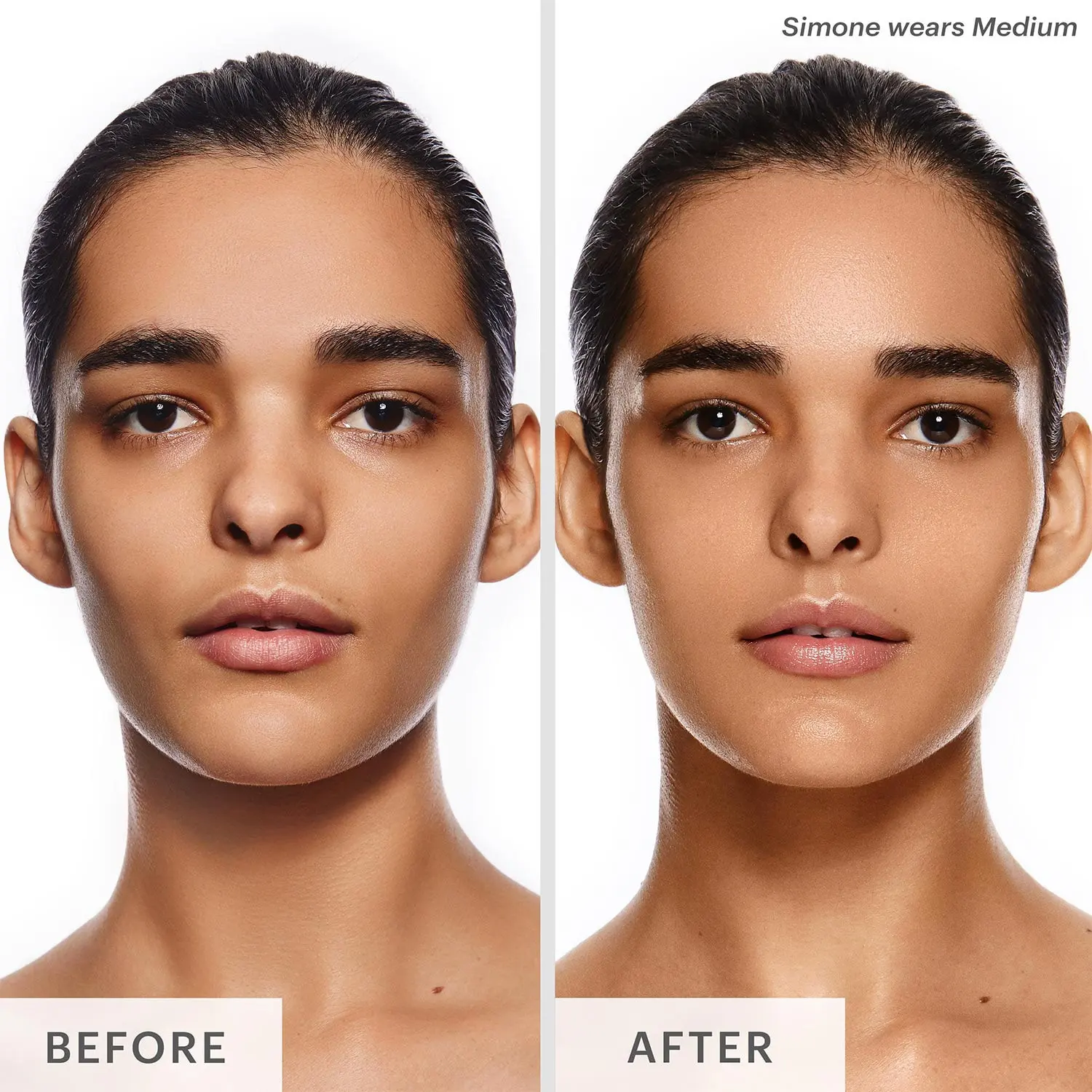 Appuyez sur le bouton pour distribuer 1 à 2 gouttes de fond de teint à appliquez sur le visage. Pour une couvrance plus importante, laissez sécher puis appliquez à nouveau 1 à 2 gouttes.