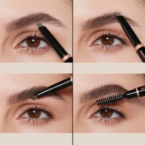 Pour enrober uniformément les sourcils de la racine à la pointe, appliquez le gel avec le côté de la brosse à longs picots.
