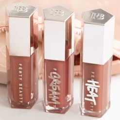 Vous pouvez porter ce gloss de FENTY BEAUTY seul, ou en top coat par-dessus un rouge à lèvres pour apporter la touche finale à votre look