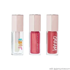 FENTY BEAUTY Glossy Posse Volume 6.0 est le groupe le plus brillant : un trio crème, chatoyant et chaleureux de nuances Gloss Bomb juteuses. – 3 FORMULES, UN OBJECTIF : DES LÈVRES JUTEUSES.