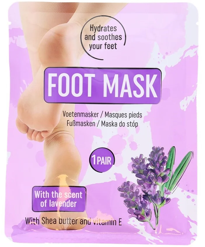 Masque pour pieds au beurre de karité et de la vitamine E. Il adoucit et protège vos pieds secs et abîmés tout en les nourrissant en profondeur et en les parfumant d’une agréable odeur de lavande.