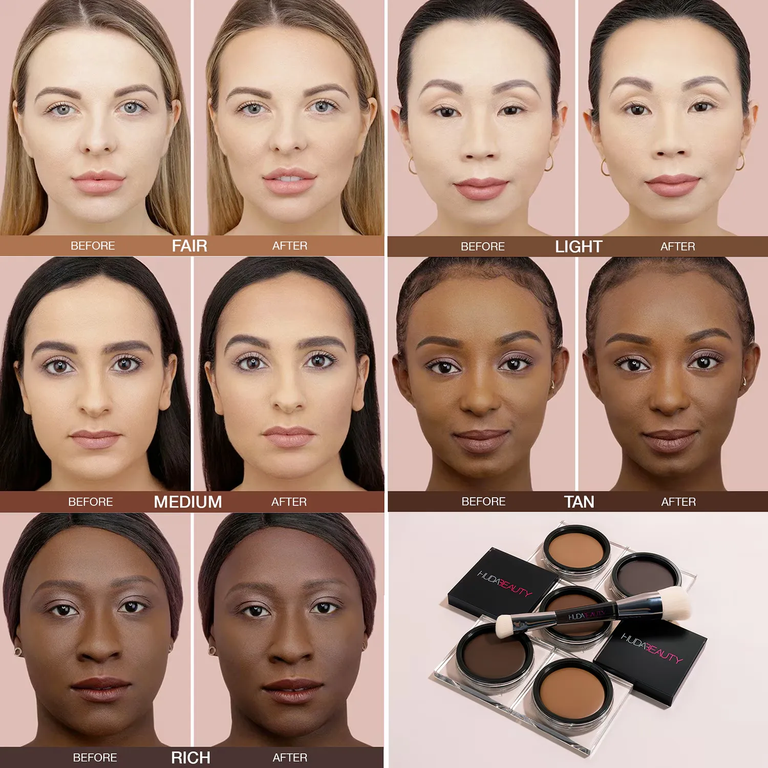 HUDA BEAUTY Tantour Contour & Bronzer est une crème bronzante contouring dans une luxueuse formule 2 en 1, une crème contouring au fini poudré. Cette poudre bronzante crème-poudre profondément pigmentée vous donne un aspect bronzé naturel ou un contour spectaculaire lorsque vous superposez et construisez.