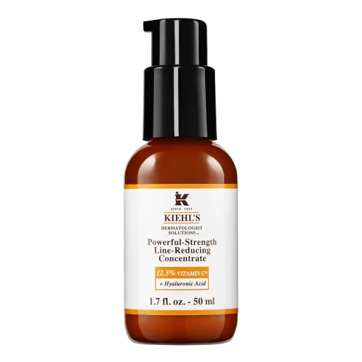 Le sérum anti-âge iconique de Kiehl’s à la Vitamine C, Powerful-Strength Line-Reducing Concentrate, qui renforce l’éclat, aide à raffermir la peau et diminue visiblement les ridules, les rides et les pores pour une peau d’apparence plus lisse. Reformulé avec 12,5% de Vitamine C et d’Acide Hyaluronique, ce sérum breveté et sans eau est un des produits iconiques de Kiehl’s.
