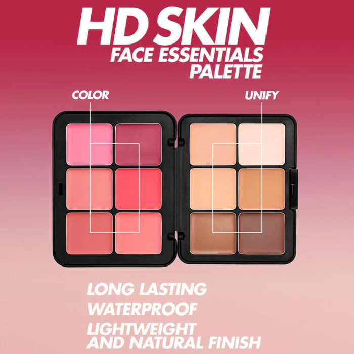 – La palette HD SKIN Face Essentials contient tout ce qu’il y a de mieux pour votre visage et vos joues. Avec cette palette, vous pouvez unifier et sculpter votre teint, mais aussi mettre en valeur et réchauffer vos joues!