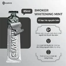 MARVIS Smokers Whitening Mint Toothpaste est un dentifrice blanchissant à la menthe pour les fumeurs, votre allié pour retrouver un sourire éclatant. Sa formule unique favorise le blanchiment naturel des dents en éliminant efficacement les taches tenaces causées par le tabac, le café ou le thé. Mais ce n’est pas tout ! Ce dentifrice anti-plaque prévient également la formation de tartre et vous offre une fraîcheur mentholée longue durée. Son goût rafraîchissant et sa texture crémeuse transforment le brossage des dents en un véritable moment de plaisir. Offrez à votre sourire l’éclat qu’il mérite avec le dentifrice blanchissant pour fumeurs MARVIS MENTHE.