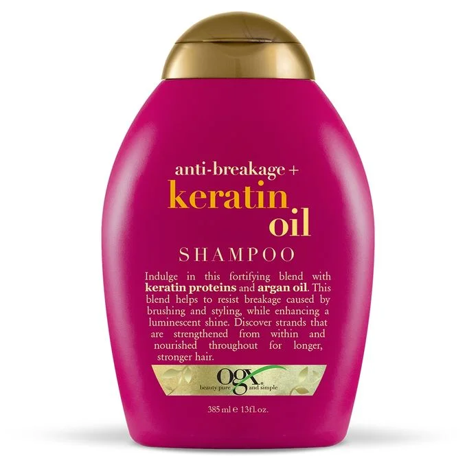 Ce shampooing anti-casse à l’huile de kératine de Ogx vous offre un soin riche. Les protéines de kératine renforcent chaque cheveu, augmentant l’élasticité et la résistance à la rupture provoquée par le brossage et les appareils coiffants (lisseur, multistyler). L’huile d’argan lisse et renforce le cheveu de l’intérieur. Protégés et nourris, les cheveux sont plus forts.