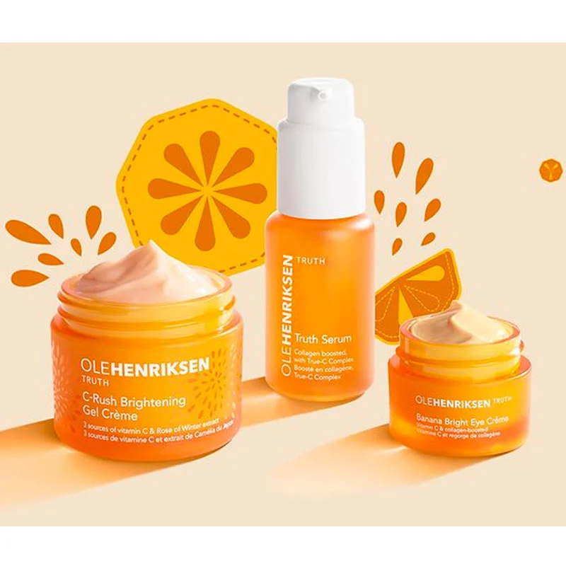 – Truth Serum: un sérum à la vitamine C et au collagène pour lutter contre les signes visibles du vieillissement et améliorer l’élasticité de la peau.