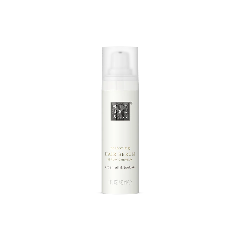 RITUALS Elixir Restoring Hair Serum est un sérum capillaire hautement concentré et enrichi en huile d’argan et en tsubaki. Il répare et nourrit les cheveux abîmés en scellant les pointes fourchues. Il apporte brillance et élimine les frisottis sans alourdir ni graisser vos cheveux. Vos cheveux sont doux et soyeux, tandis que la vitamine E qu’il contient les protège des agressions extérieures telles que la chaleur, les radicaux libres et les rayons UV.