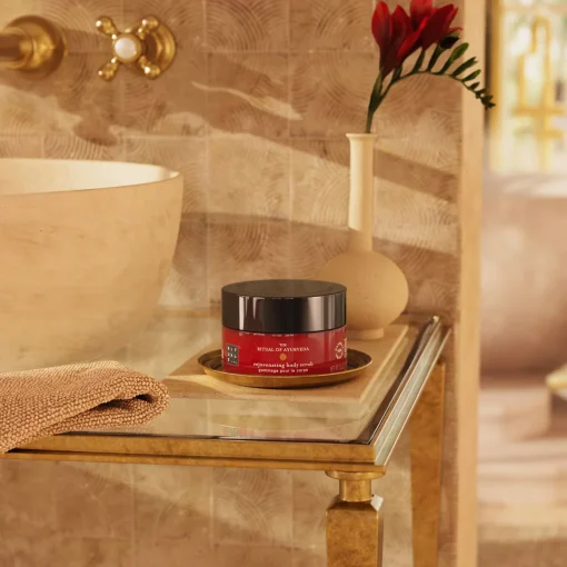 RITUALS The Ritual of Ayurveda Body Scrub est un gommage pour le corps purifiant qui contient des cristaux de sel issus de couches géologiques de l’Himalaya, aux vertus purifiantes et harmonisantes, contribuant à l’équilibre intérieur et à la vitalité.