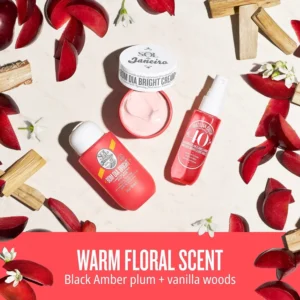 SOL DE JANEIRO Bom Dia Bright™ Jet Set est une routine corporelle visiblement éclaircissante prête pour le voyage, composée des best-sellers du parfum primé Cheirosa 40. Bom Dia signifie bonne journée et quelle meilleure façon de commencer votre journée qu’avec trois des best-sellers de Sol de Janeiro dans le Bom Dia Bright Jet Set.