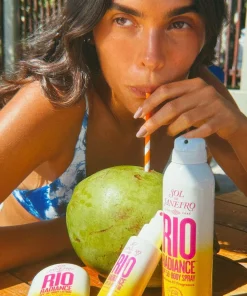SOL DE JANEIRO Rio Radiance Body Spray SPF50 est un spray corporel SPF50 qui rafraichit et hydrate la peau pour un éclat naturel. Prélassez-vous dans la senteur estivale et nostalgique du soleil sur votre peau. L’extrait de pitanga riche en vitamine C et la niacinamide éclaircissent visiblement et aident à uniformiser le teint tandis que l’extrait de graines de pongamia fournit de puissants antioxydants. Imprégnez-vous de ce parfum de plage et nostalgique Cheirosa 87 avec des notes de tubéreuse solaire et de leite de coco. Son parfum exotique de noix de coco, de sable chaud, de vanille et d’ambre vous transportera directement sur la plage.