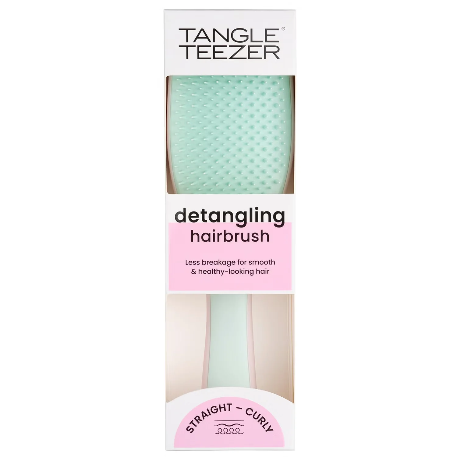 TANGLE TEEZER Detangling Hairbrush Curly est une brosse démêlante ultime en menthe rose idéale pour les cheveux épais et bouclés et qui glisse doucement sur les cheveux frais sous la douche, favorisant une routine de démêlage plus facile.