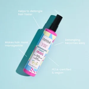 Pas de larmes, pas d’enchevêtrements et que des sourires pour votre enfant avec ce spray démêlant pour enfants certifié par la Vegan Society et la PETA et non testé sur les animaux.