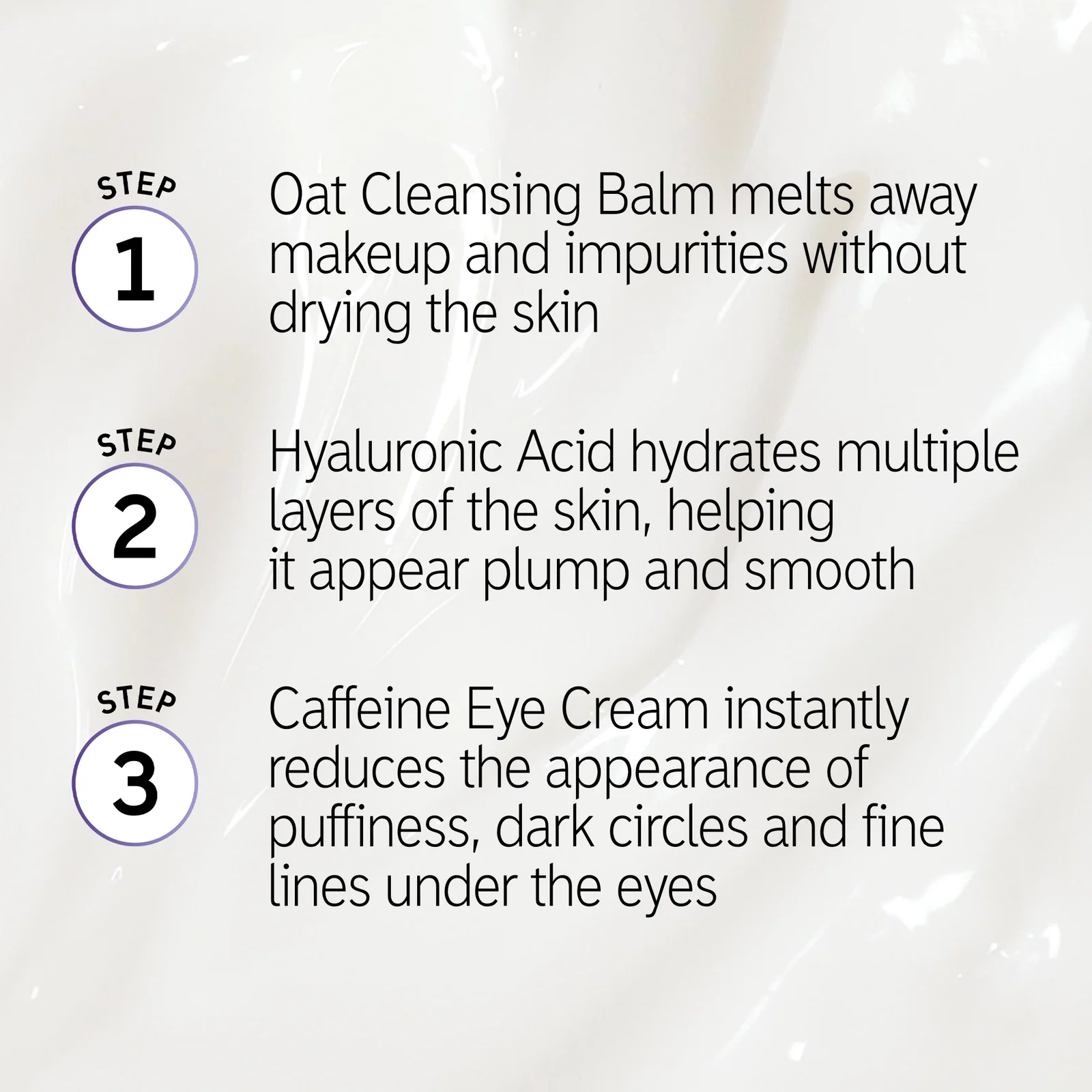 – ÉTAPE 2 : PRENEZ SOIN de votre peau avec la Crème pour les yeux à la caféine. Utiliser matin et soir. Sur une peau propre, appliquer une petite quantité de produit sur le doigt et tapoter délicatement autour du contour des yeux. Appliquer ensuite un hydratant.