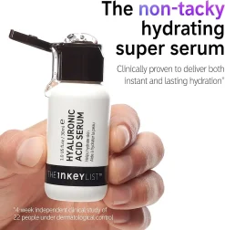 Naturellement présent dans la peau pour maintenir l’hydratation, l’acide hyaluronique diminue progressivement au fil du temps, ce qui peut entraîner un teint terne, des ridules et une texture irrégulière. L’hydratation est essentielle pour une peau éclatante. Le sérum Hyaluronic Acid de THE INKEY LIST agit comme un aimant pour l’hydratation pour que votre peau soit hydratée, repulpée et éclatante. Le sérum Hyaluronic Acid permet de :