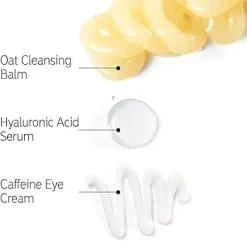 – Baume Nettoyant à l’Avoine 150 ml : Un nettoyant riche qui laisse la peau hydratée et clarifiée. La formule profondément nourrissante contient de la farine d’avoine colloïdale et de l’huile de noyau d’avoine pour faire fondre sans effort le maquillage et les impuretés, tout en offrant des bienfaits apaisants. La peau sèche est ravivée et régénérée en hydratation.
