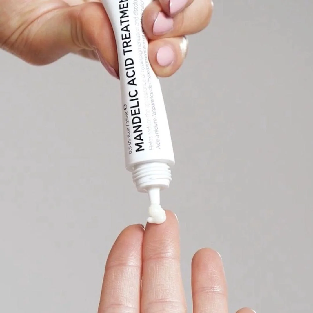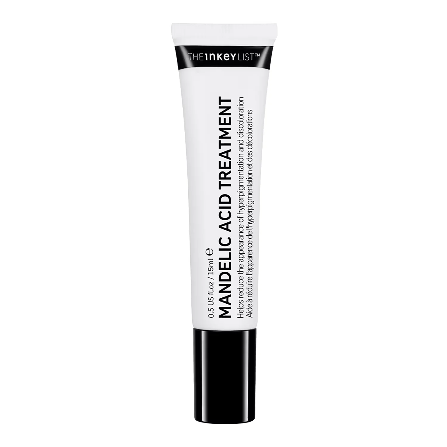 THE INKEY LIST Mandelic Acid Treatment est un soin ciblé, doux et léger à base d’acide mandélique 10 % (un AHA) issu de l’amande amère, et d’un ingrédient unique The Inkey List qui associe deux formes de rétinol. Ce soin permet de réduire les impecfections sans dessécher la peau, et de l’exfolier en douceur tout en l’hydratant.