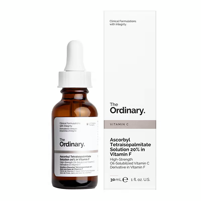 Suralimenté avec un dérivé soluble dans l’huile de vitamine C (le tétraisopalmitate d’ascorbyle qui donne son titre à ce traitement), la solution de tétraisopalmitate d’ascorbyle ordinaire à 20% en vitamine F offre des avantages éclaircissants incroyables. La solution à haute puissance (mais douce) agit pour bloquer la production de pigment et augmenter le renouvellement cellulaire et, en plus de la vitamine C au format huile, la formule est enrichie de vitamine F, connue pour fournir à la peau des acides gras essentiels. Quelques gouttes de ce traitement léger à l’huile suffisent.