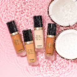 Ce fond de teint magique s’adresse à toute personne qui souhaite une couverture moyenne à complète, pour un fini naturel et satiné. Ce fond de teint est infusé d’un mélange d’eau de noix de coco pour hydrater la peau; de rose alpine pour illuminer l’apparence de la peau et d’acide hyaluronique pour une peau d’apparence plus douce, plus jeune.