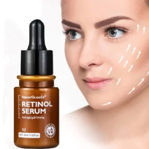 VIBRANT GLAMOUR Retinol Serum Anti-Aging & Firming est un sérum double rétinol qui élimine les radicaux libres superoxydes, inverse le photovieillissement, accélère l’auto-renouvellement de la peau, inhibe la formation des rides, favorise la synthèse du collagène, estompe les ridules, aide la couche cornée à se mettre à jour et éclaircit le teint pour une peau ferme et liftée.