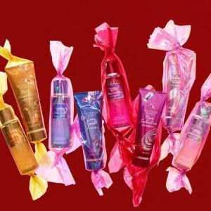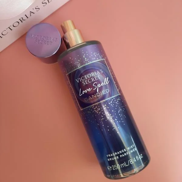 VICTORIA’S SECRET Love Spell Candied est une brume festive et lumineuse. Vos parfums préférés se teintent d’une nostalgie irrésistible portée par des notes sucrées de bonbons à la pêche, de sucettes tourbillons à la prune et de rubans de caramel.