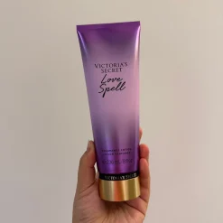 VICTORIA’S SECRET Love Spell est une lotion corporelle au parfum romantique de fleur de cerisier et de pêche juteuse.