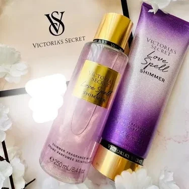 VICTORIA’S SECRET Love Spell Shimmer est un duo de brume et lotion scintillant unique adapté à chaque instant et qui révèle toutes vos facettes. Un parfum irrésistible, qui vous fera littéralement rayonner. Son parfum frais, floral et fruité ravira vos sens et les microparticules scintillantes illumineront parfaitement votre peau. Rafraîchissez-vous et hydratez-vous avec ce duo à tout moment de la journée et imprégnez votre peau de son doux parfum.