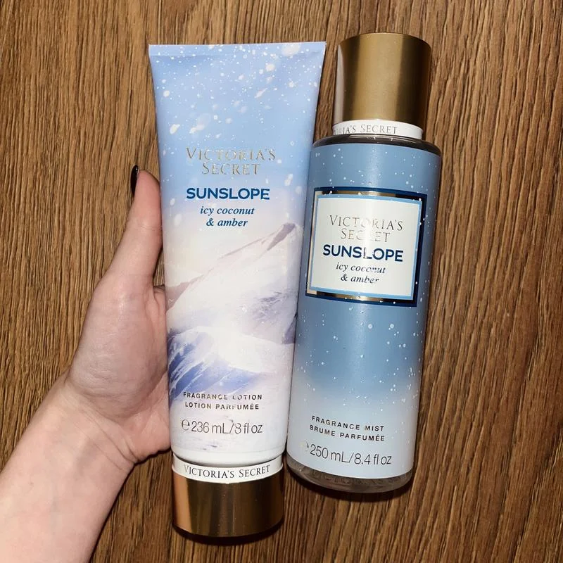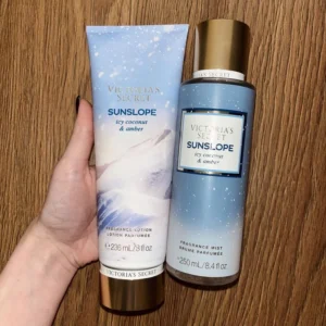 VICTORIA’S SECRET Sunslope Icy Coconut & Amber est un duo qui parfumera subtilement votre peau, tout en l’hydratant et en la rafraîchissant. Du bord des pistes au coin du feu, faites l’expérience d’un chalet d’hiver et explorez les montagnes ensoleillées avec Sunslope, rempli de notes de baies glacées, de noix de coco arctique et de chocolat chaud.